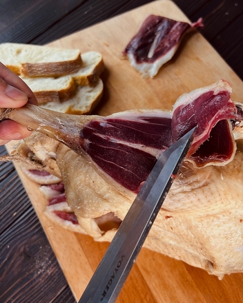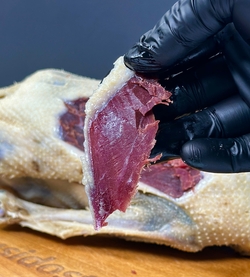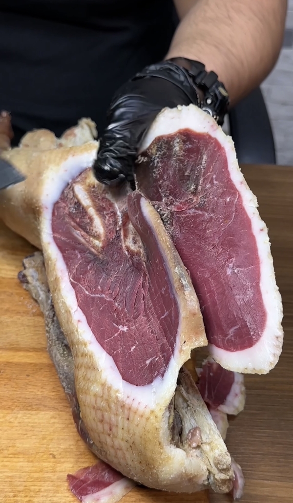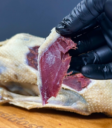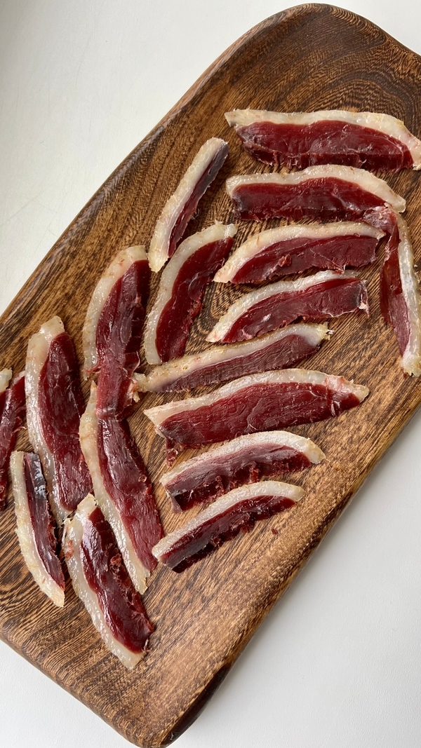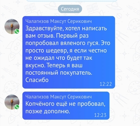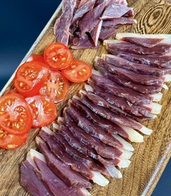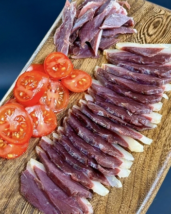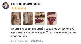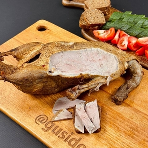 Домашний гусь вяленый - это элитный татарский деликатес, в составе только соль и деревенский гусь. Рецепту более 1000 лет. В составе только соль и натуральное провяленое мясо гуся.