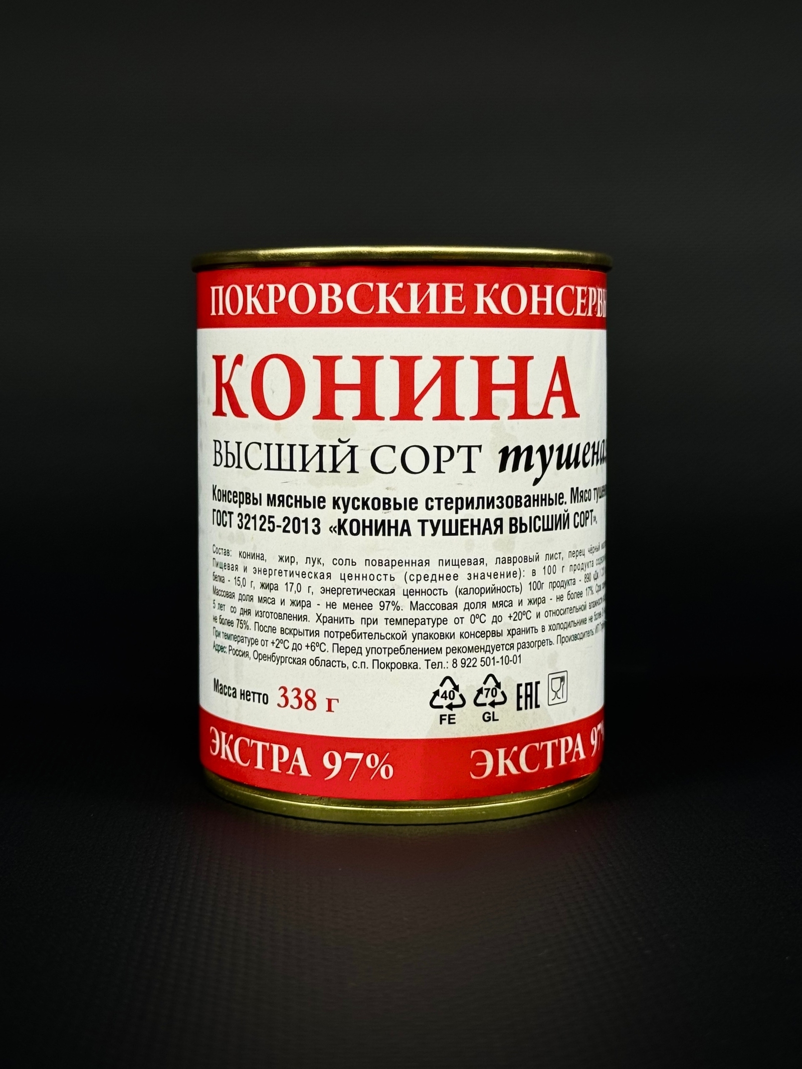 Настоящая тушенка приготовленная по ГОСТу СССР. До 90% мяса в банке. Срок годности - 5 лет.
